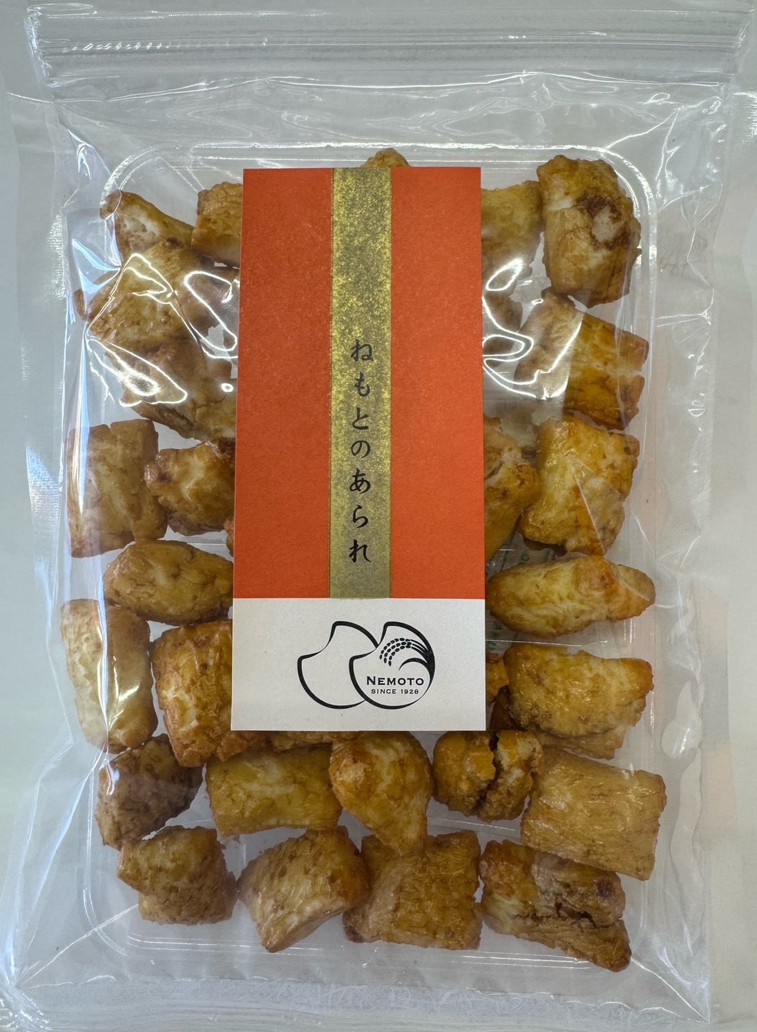 時間をかけて乾燥させた生地をたまり醤油で仕上げた堅めのあられです